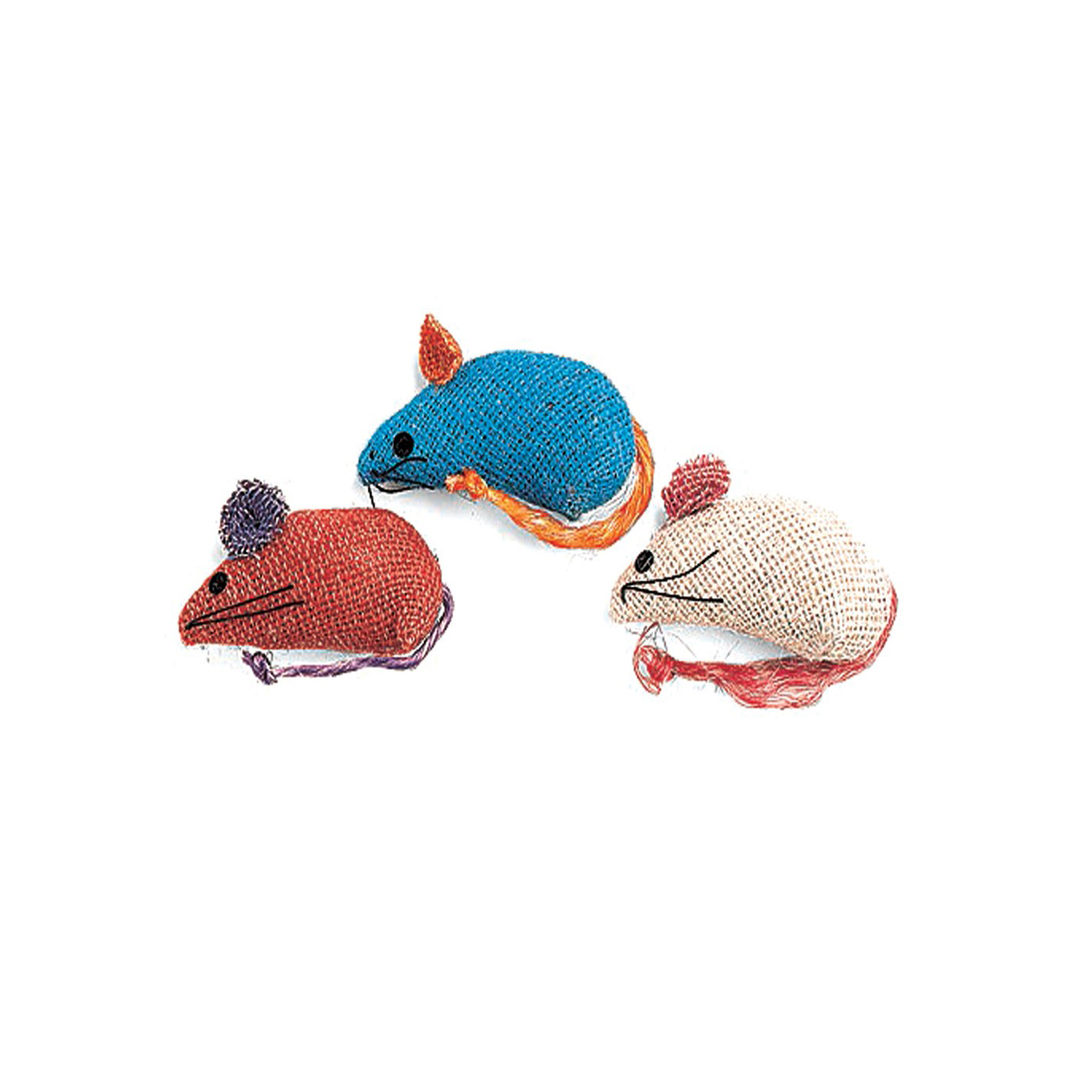 Colored Burlap Mice Cat Toy 3 Count quantity