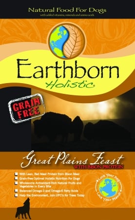 Before conventional dog food, your dog’s ancestors relied on their instincts and hunting capabilities to capture raw, protein-rich food. Today your dog relies on you for food, but that doesn’t mean his diet has to change. Dogs still crave meat protein, and Earthborn Holistic Grain-Free Dog Food Formulas are designed to provide the taste your dog loves and the nutrition he needs for physical well-being and good health.Ingredients: Bison Meal, Peas, Pea Protein, Tapioca, Dried Egg Product, Canola Oil (preserved with Mixed Tocopherols), Flaxseed, Lamb Meal, Pea Fiber, Natural Flavors, Blueberries, Cranberries, Apples, Carrots, Spinach, Choline Chloride, Potassium Chloride, DL-Methionine, L-Lysine, Taurine, L-Carnitine, Vitamin A Supplement, Vitamin D3 Supplement, Vitamin E Supplement, Zinc Sulfate, Ferrous Sulfate, Niacin, Folic Acid, Biotin, Manganese Sulfate, Copper Sulfate, Salt, Calcium Pantothenate, Thiamine Mononitrate, Pyridoxine Hydrochloride, Riboflavin Supplement, L-Ascorbyl-2-Polyphosphate (source of