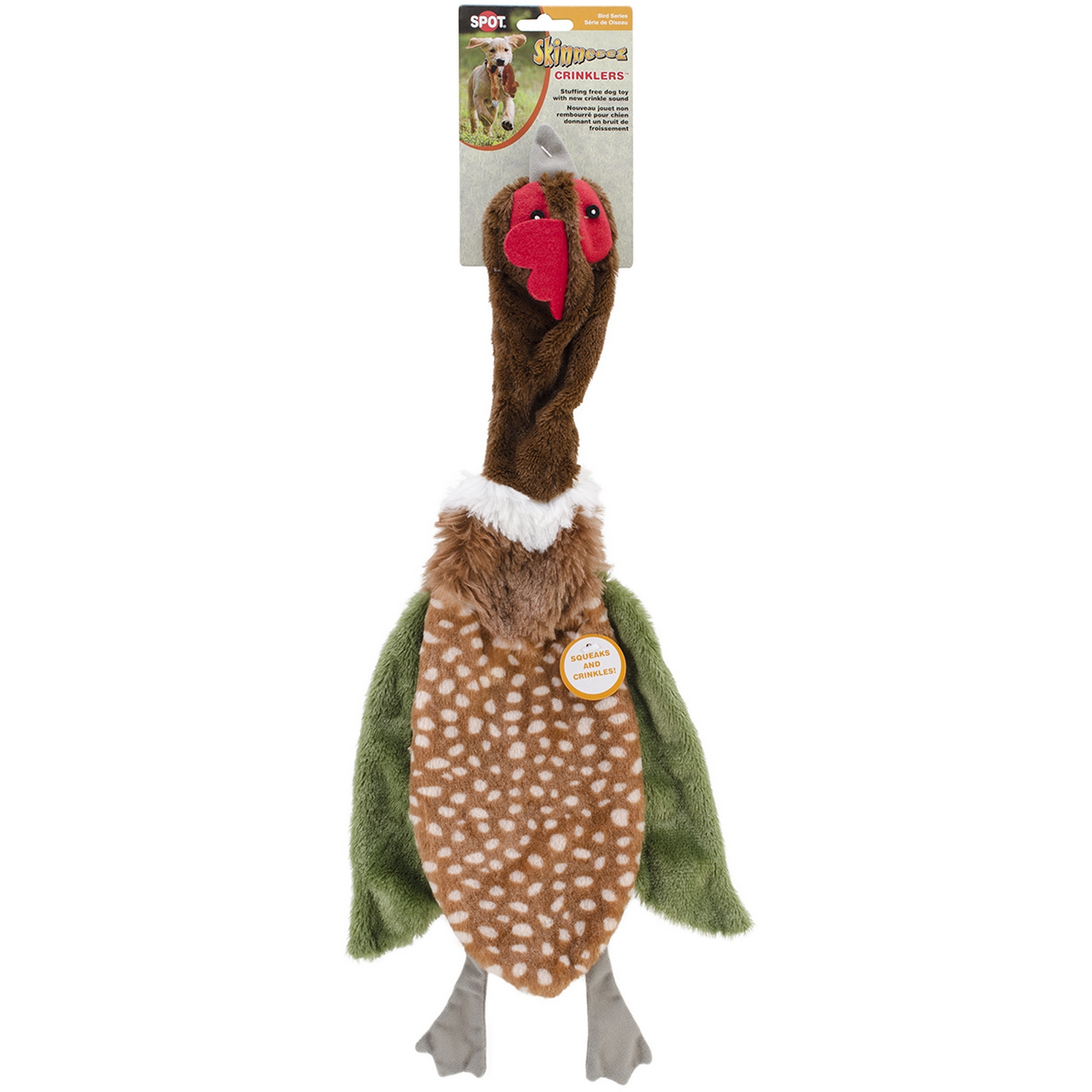 Established in 1952 Ethical Products Inc. makes dog and cat toys dishes accessories and dog apparel. This company stands behind its name it does no harmful animal testing uses recycled fill in toys and beds and operates its facilities with 100% solar power. Give your canine a unique squeaker toy without stuffing — the Skinneeez Crinklers Bird. With no stuffing to rip out — just crinkle paper — this toy offers long-lasting flip-flopping fun without a potential mess.