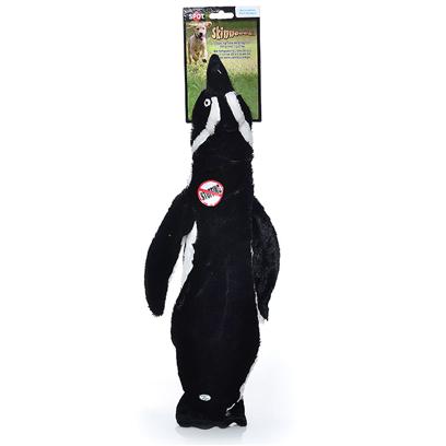 The SPOT Skinneeez Dog Toy will delight your pup and keep it busy. It measures 23 . This stuffing-free dog toy provides hours of play without the potential destruction and mess of a stuffed animal that gets ripped and torn. It is made of super soft plush for cuddling when playtime is done. The plush dog toy is designed to have a flip-flopping action that your pet will enjoy and satisfies your canine s natural instinct to hunt. It includes a squeaker inside for endless fun. The SPOT Skinneeez Dog Toy is available in a variety of animal designs; collect one or several to keep your furry friend entertained.